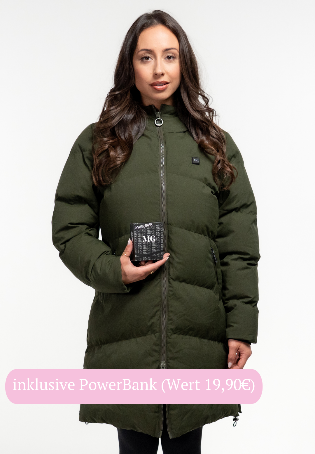 Die Jacke ist wasserabweisend, waschbar bei 30 °C und wird mit einer MG Power Bank (Wert 19,90 €) geliefert. Ein Knopfdruck auf das MG Logo genügt – und schon erleben Sie Wärme auf Knopfdruck.