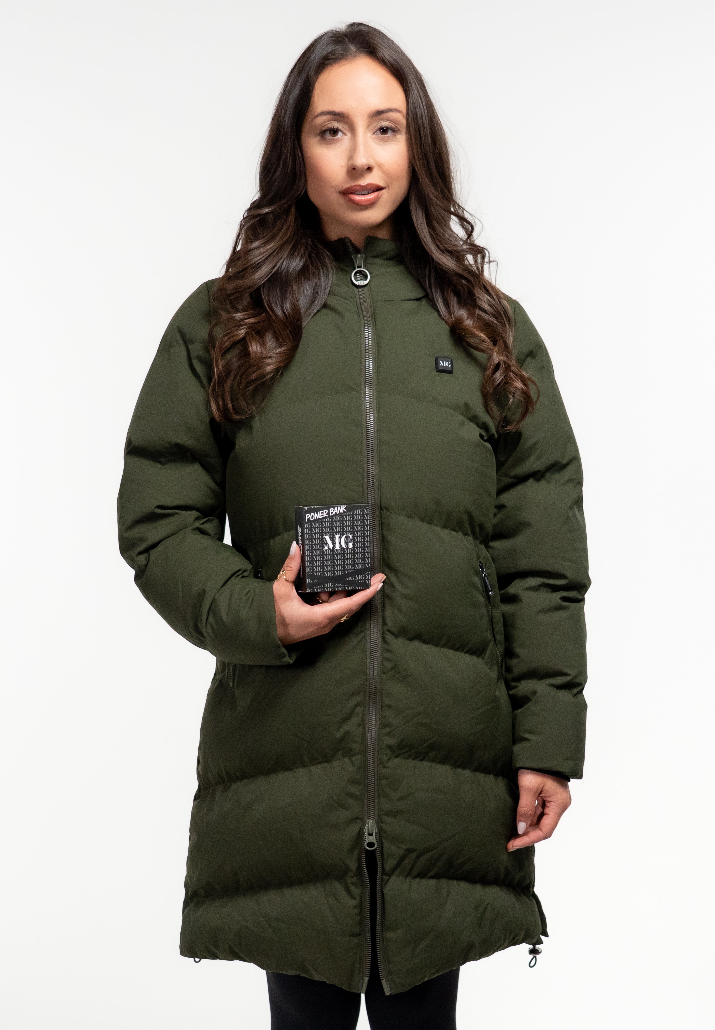 Długa oliwkowozielona kurtka z ogrzewaniem Mont Gerrard