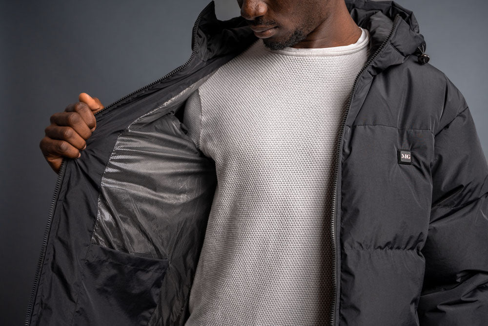 Using the jacket is simple: MG Power Bank connects to the jacket's inside pocket. Just press and hold the MG logo to activate the heating function. The heated modules in the back and front will keep you warm, even in arctic temperatures. With three adjustable heating levels and a maximum temperature of 140°F, you have complete control over your comfort.