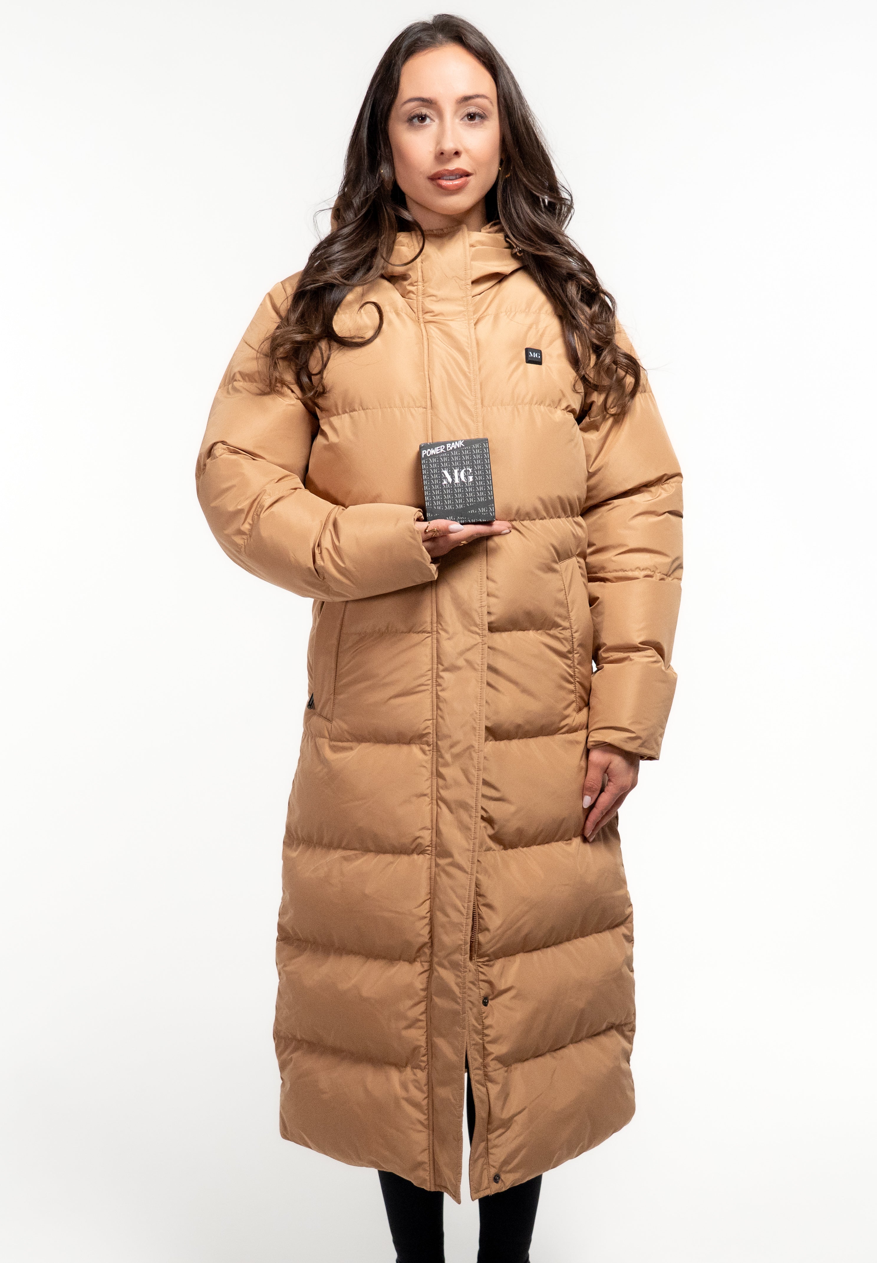 Using the jacket is simple: MG Power Bank connects to the jacket's inside pocket. Just press and hold the MG logo to activate the heating function. The heated modules in the back and front will keep you warm, even in arctic temperatures. With three adjustable heating levels and a maximum temperature of 140°F, you have complete control over your comfort.