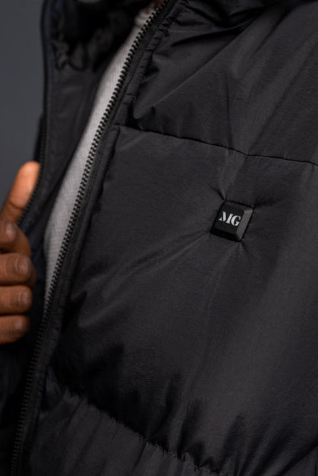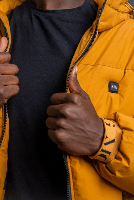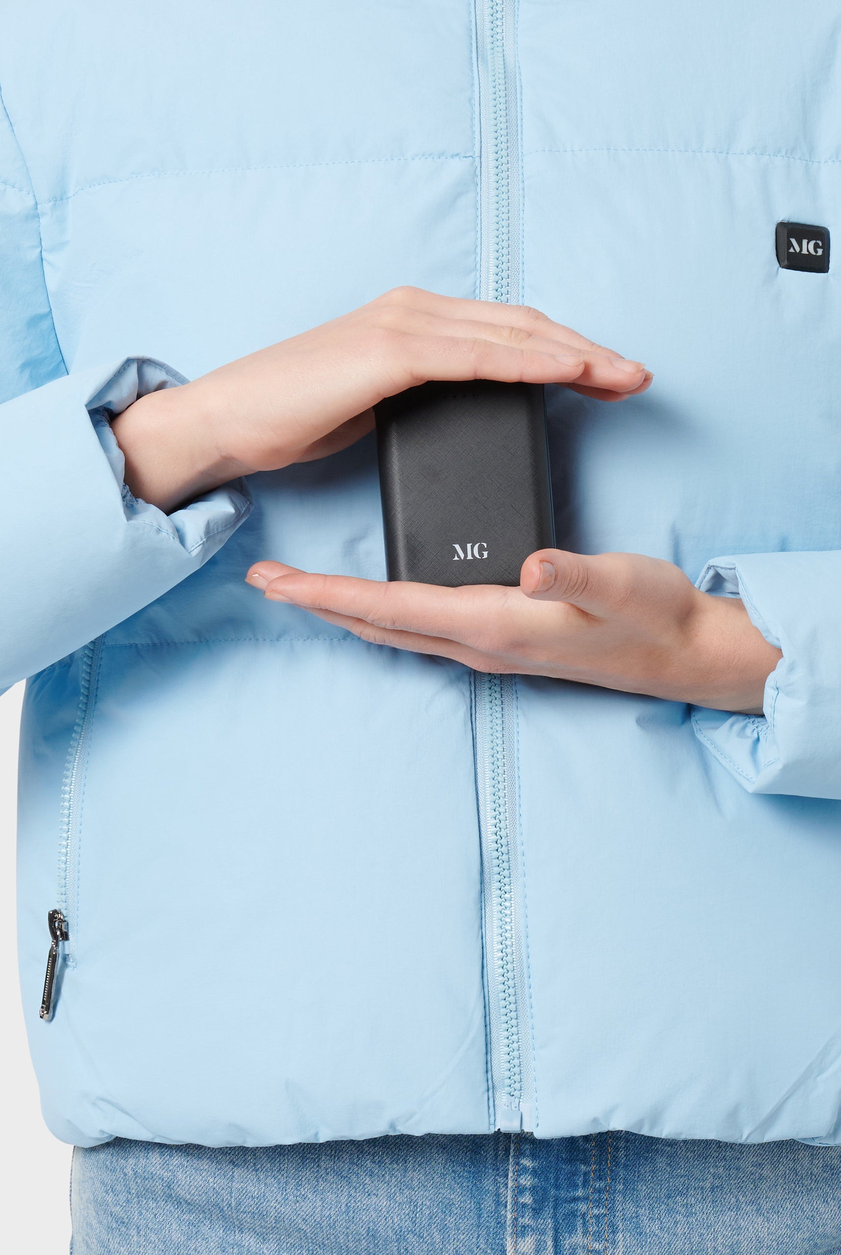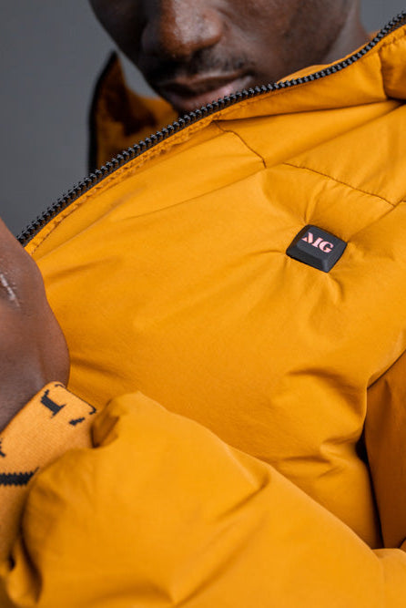 Using the jacket is simple: MG Power Bank connects to the jacket's inside pocket. Just press and hold the MG logo to activate the heating function. The heated modules in the back and front will keep you warm, even in arctic temperatures. With three adjustable heating levels and a maximum temperature of 120°F, you have complete control over your comfort.