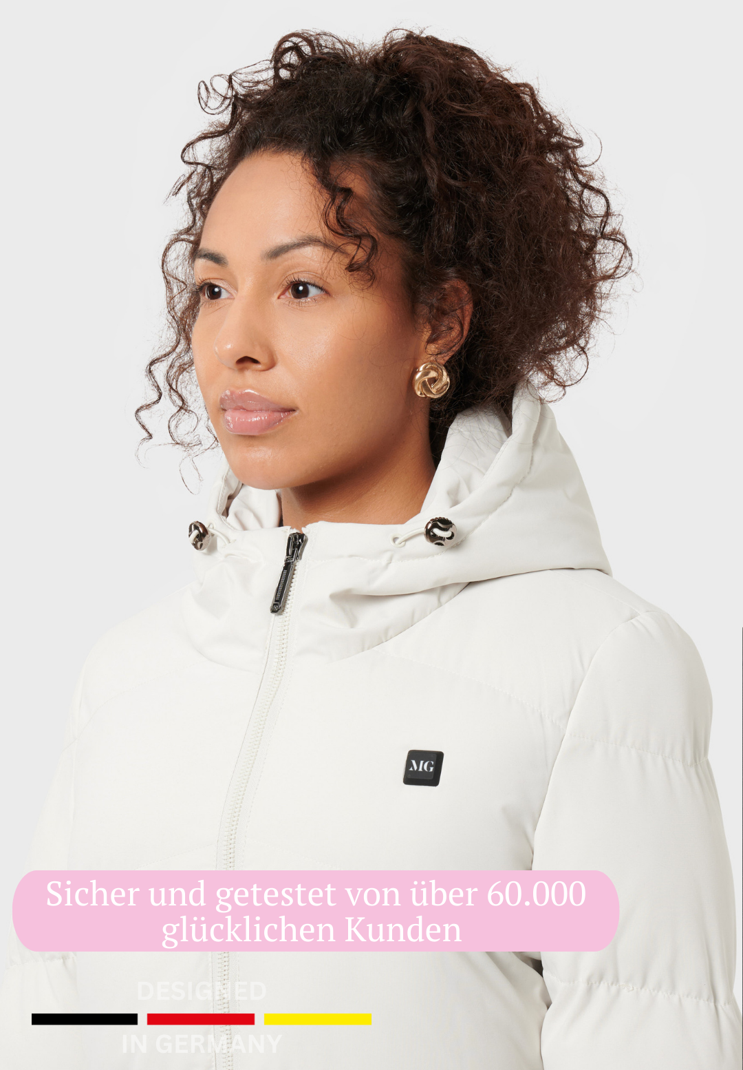 Die Jacke ist wasserabweisend, waschbar bei 30 °C und wird mit einer MG Power Bank (Wert 19,90 €) geliefert. Ein Knopfdruck auf das MG Logo genügt – und schon erleben Sie Wärme auf Knopfdruck.